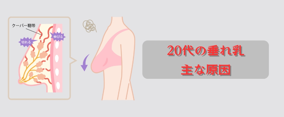 「胸が垂れる=年齢のせい」と思われがちですが、実際には20代でも下垂のサインは現れます。胸は重力や生活習慣の影響を日々受け続けており、原因を知って早めに対策することが、将来のバストラインを守る鍵です。ここでは、20代で見落としやすい主要な原因を詳しく解説します。