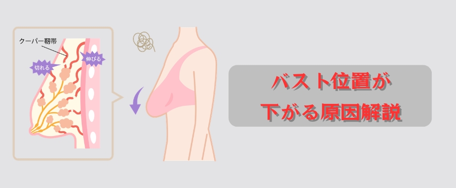 胸の位置が低くなる原因については、以下の記事でより詳しく解説していますので参考にしてみてください。