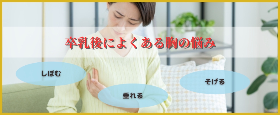 卒乳後のバスト悩みは、しぼみ、下垂、そげ感、左右差、姿勢の崩れなどが重なっていることがあります。自分では「胸が小さくなった」と感じていても、実際にはデコルテのそげ感や巻き肩によって、胸元が寂しく見えている場合もあります。